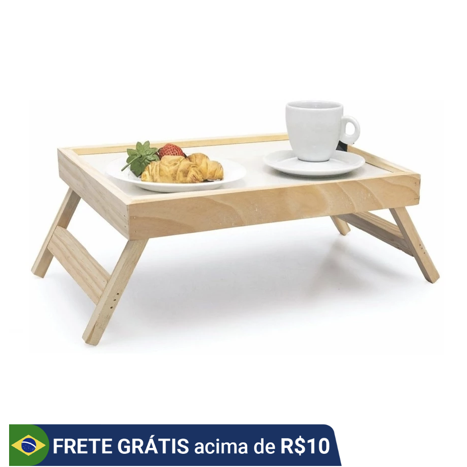 A Bandeja café na cama, possui Pés Dobráveis Estrutura em Madeira é a escolha ideal para servir aquele café da manhã delicioso e cheio de variedades. Ela é produzida em madeira pinus, derivada de florestas de produção e conta com acabamento natural. Além disso, ela é muito versátil e pode ser utilizada também como objeto decorativo ou para você dispor itens para organizar sua mesa, balcão ou aparador.