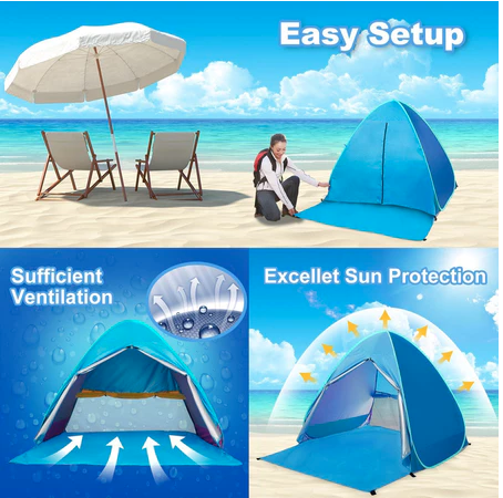 Este Toldo de Barraca de Praia é a escolha perfeita para quem busca praticidade, proteção solar e conforto durante o tempo ao ar livre. Seu design inovador, peso leve e excelente proteção UV fazem dele o acessório ideal para sua próxima aventura na praia, parque ou qualquer evento ao ar livre.