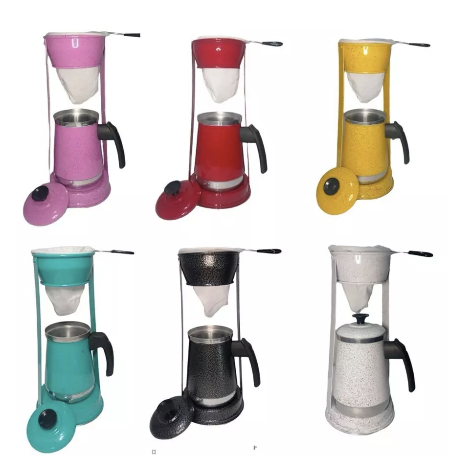 Bule Com Mancebo Coador De Café Colorido Retro Em Alumínio