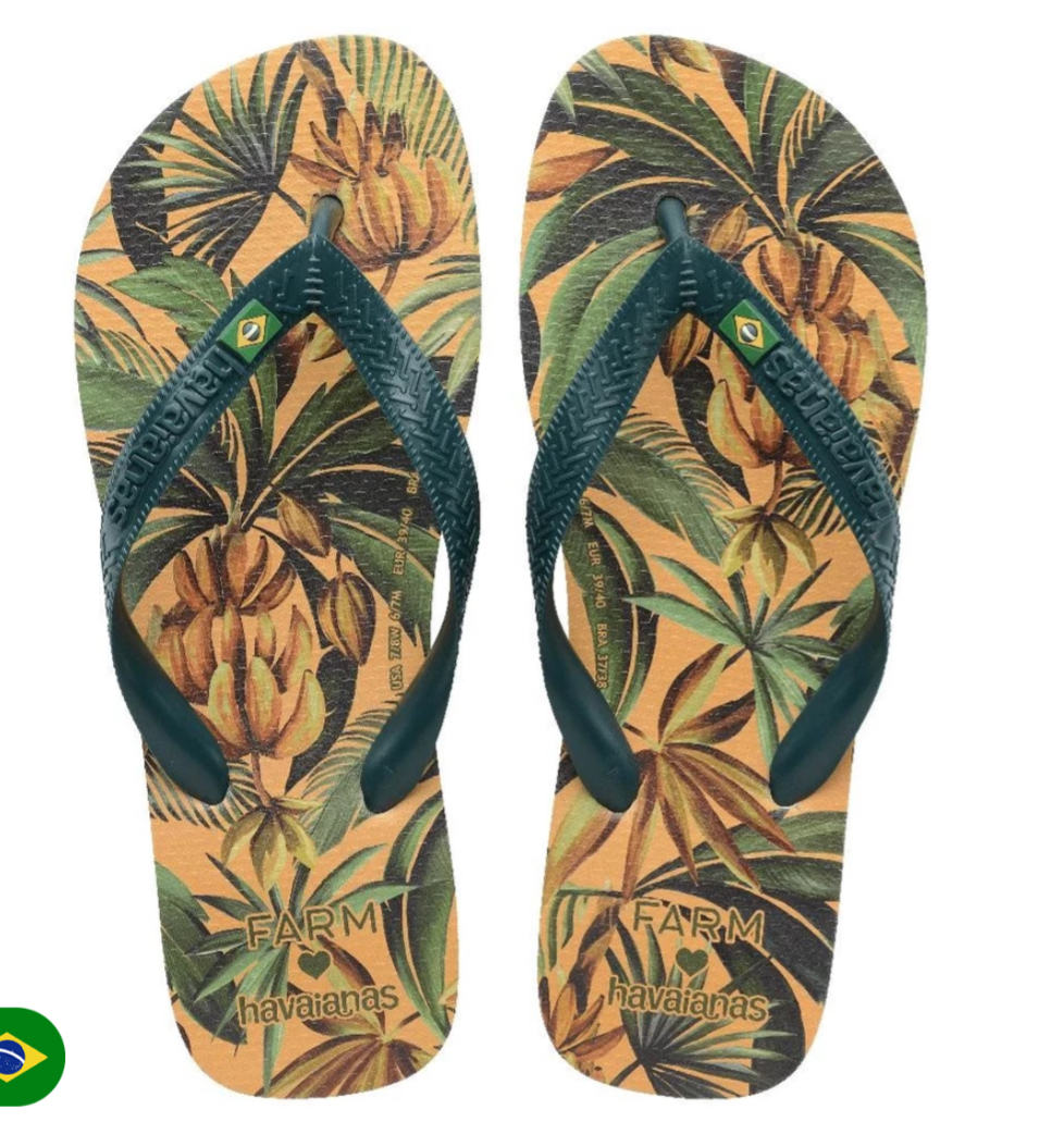 Havaianas e Farm se juntaram para essa parceria brasileiríssima: a combinação do conforto que você já conhece dos chinelos mais amados do mundo com as estampas icônicas da marca carioca. Tinha que dar certo! O modelo Farm Bananarte 24 é um convite para curir o verão!