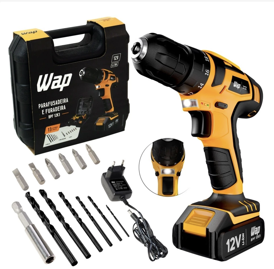 Para quem busca praticidade e eficiência nas diversas tarefas manuais a Furadeira Parafusadeira 3/8″ a bateria 12V com kit de brocas BPF 12K3 da Wap é a solução ideal. Com design exclusivo WAP, é uma ferramenta compacta, porém robusta, ideal para pequenas reformas e manutenção do lar.