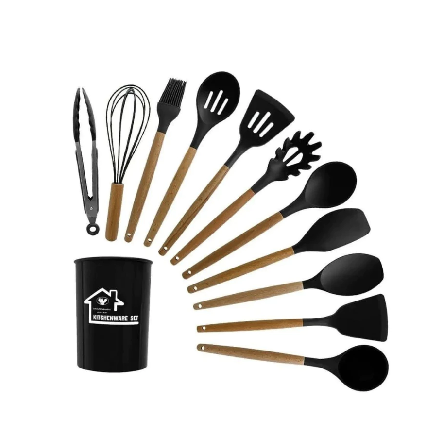 DescriçãoLindo jogo com 12 utensílios domésticos, para deixar a hora do preparo da sua comida mais alegre e gostoso.- Suporta alta temperatura: faixa de temperatura – 40 a 230° C- Fácil de limpar: podem ser lavados na máquina de lavara louça- Duráveis, flexíveis, não se deformam- Não tóxico, livre BPA- Não riscam a panela- Possuem furo para pendurar- Cabo não transmite calor- Material resistenteContém:1 Colher Vazada (31,5 cm)1 Espátula (32 cm)1 Colher ( 31,5 cm)1 Espátula Vazada (32 cm)1 Colher Espátula (32 cm)1 Espátula Pão Duro (31,5 cm)1 Pegador de Massa (31 cm)1 Concha (31 cm)1 Pincel (27 cm)1 Pegador de Salada (27 cm)1 Batedor de Claras (24,5 cm)1 Pote (15 x 12 cm)Material Corpo: SiliconeMaterial Cabo: Madeira