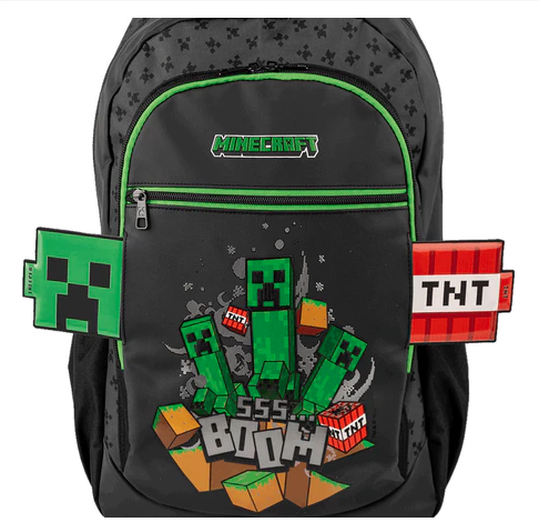 A mochila grande da coleção Minecraft Icons é a escolha perfeita para os fãs do famoso jogo. Confeccionada em poliéster de alta qualidade, ela combina durabilidade e estilo, ideal para o dia a dia ou para aventuras. Com dois compartimentos principais, oferece amplo espaço para organizar seus itens, além de um bolso frontal com zíper que proporciona fácil acesso a objetos menores. Os bolsos laterais em tela com elástico são ótimos para guardar garrafas ou outros itens que precisam estar sempre à mão. A mochila conta ainda com uma tag identificadora, que facilita a personalização e identificação. A alça de mão espumada garante conforto ao carregar, enquanto as alças de costas são espumadas e reguláveis, permitindo um ajuste perfeito ao corpo. O logo em metal adiciona um toque de sofisticação, e o fechamento com zíper assegura a segurança dos seus pertences. Com um design que reflete a essência do universo Minecraft, essa mochila é uma excelente opção para quem busca praticidade e estilo.