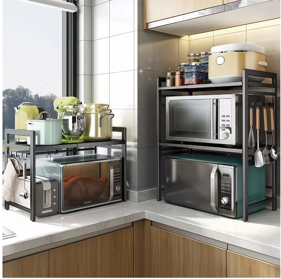✅[EXPANSÍVEL]: O comprimento da prateleira do micro-ondas é ajustável (extensão de 40 a 60 cm).